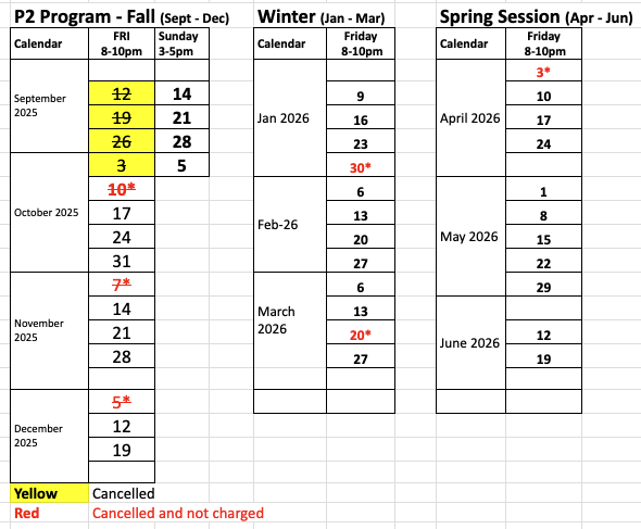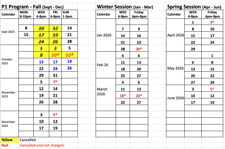 The Program #1 is running twice a week Wednesday & Friday at 6-8pm. It has split into 3 sessions: Fall, Winter and Spring.
